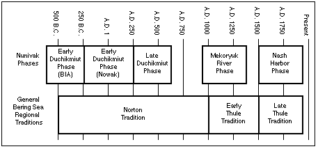Figure 1.2, Generalized chronology of archaeological sequences on Nunivak Island (Nowak